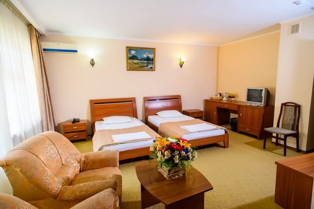 Отель расположен в деловом районе Шымкента, в 500 метрах от парка Калдаякова.